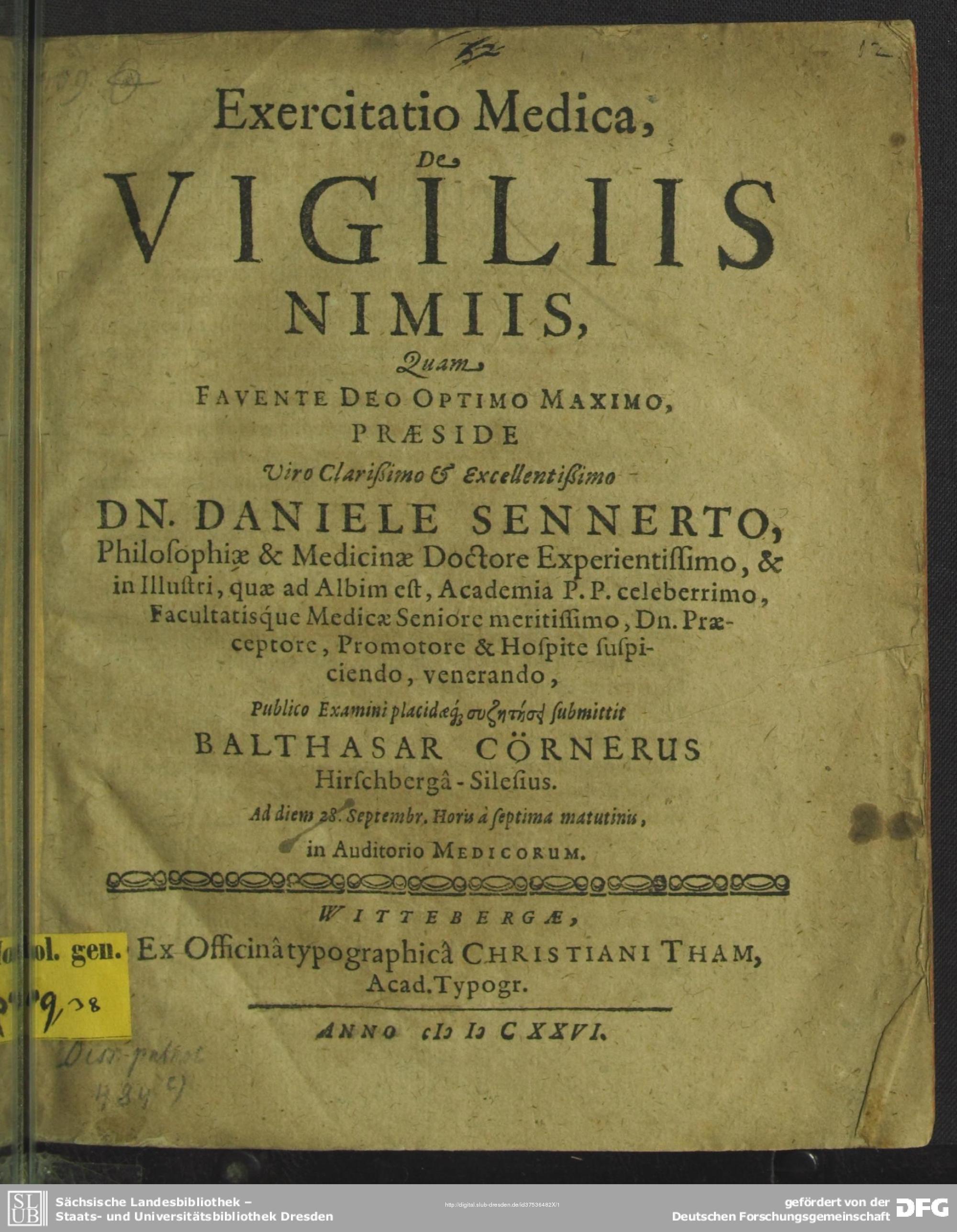 Exercitatio Medica, De Vigiliis Nimiis (1626)